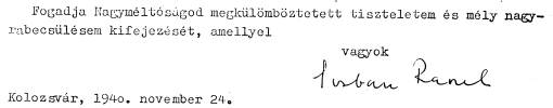 Raoul ªorban levele Bánffy Miklóshoz 1940. november 24-én