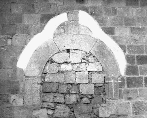 The gothic gate of the southern wall is the result of a later, probably 15th century rebuilding. The plastic solution of the bevelled profile is characteristic to the 1400's, and this is proven by several similar contemporary stiffener and window bevels.
