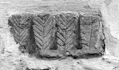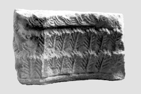 A gyulafehérvári ún. elsõ székesegyházból származó, két sorban elhelyezett pálmalevelekkel díszített töredéket a 12. századra datálhatjuk.[3]